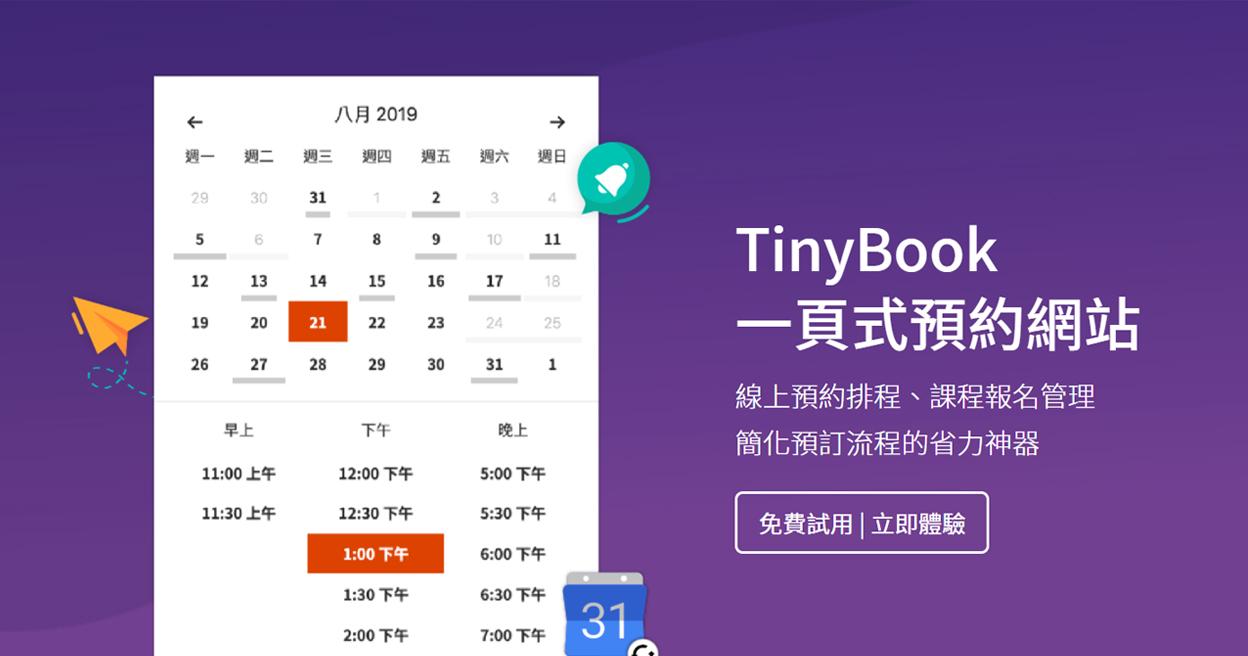 適合多角化經營的中小型企業,諸如場地空間、課程主辦單位、顧問諮詢服務、清潔打掃公司、旅遊包車行業、健身瑜伽產業、美業產業。他們多採取複合式經營模式,不會僅使用單一營收方式,也沒有足夠的人力去做營運,需要能大幅省下人力並自動化的工具。TinyBook預約系統,提供高度自動化的預約流程,從線上預約屏蔽庫存、金流支付自動對帳、電子發票自動寄送、行前提醒通知、到場Qrcode報到驗證,一站包辦。功能包含 場地&課程預約、會員&紅利點數、SEO與廣告數據追蹤。多種功能讓店家可以在一套系統裡,完成商業模式整合。